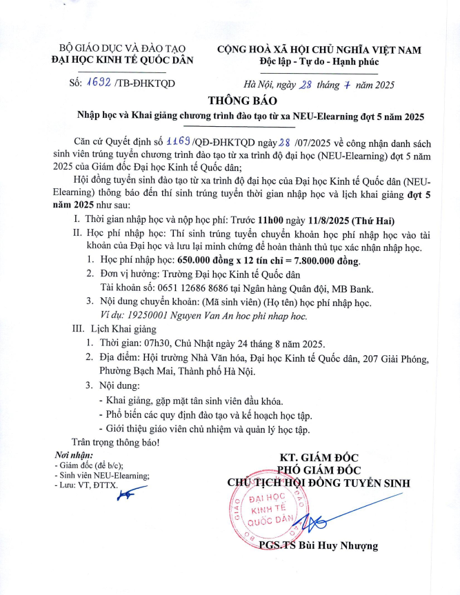 THÔNG BÁO Tuyển sinh đào tạo từ xa trình độ đại học (NEU-ELEARNING) năm 2026...
